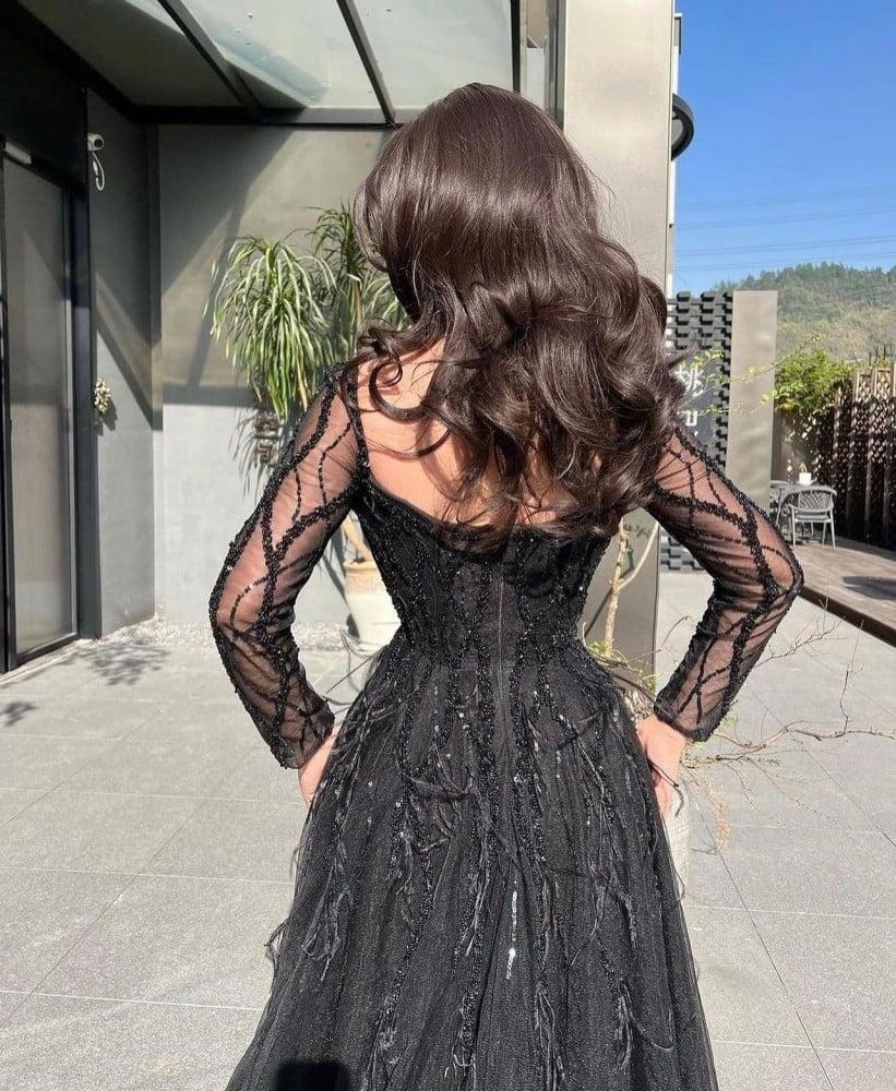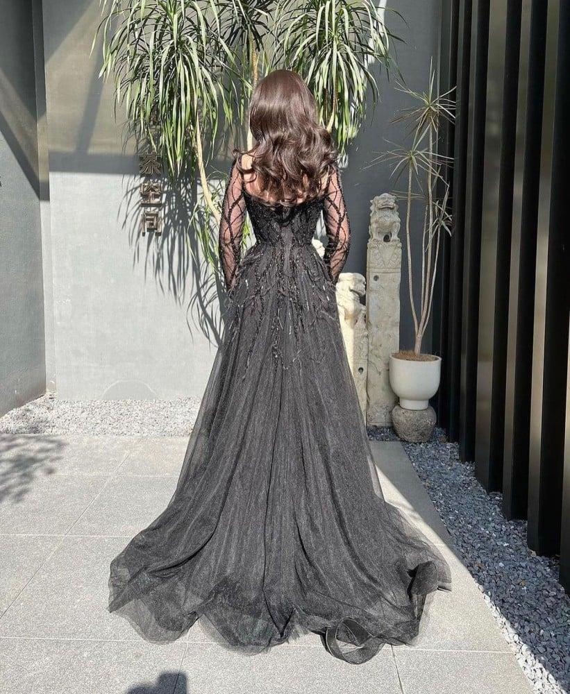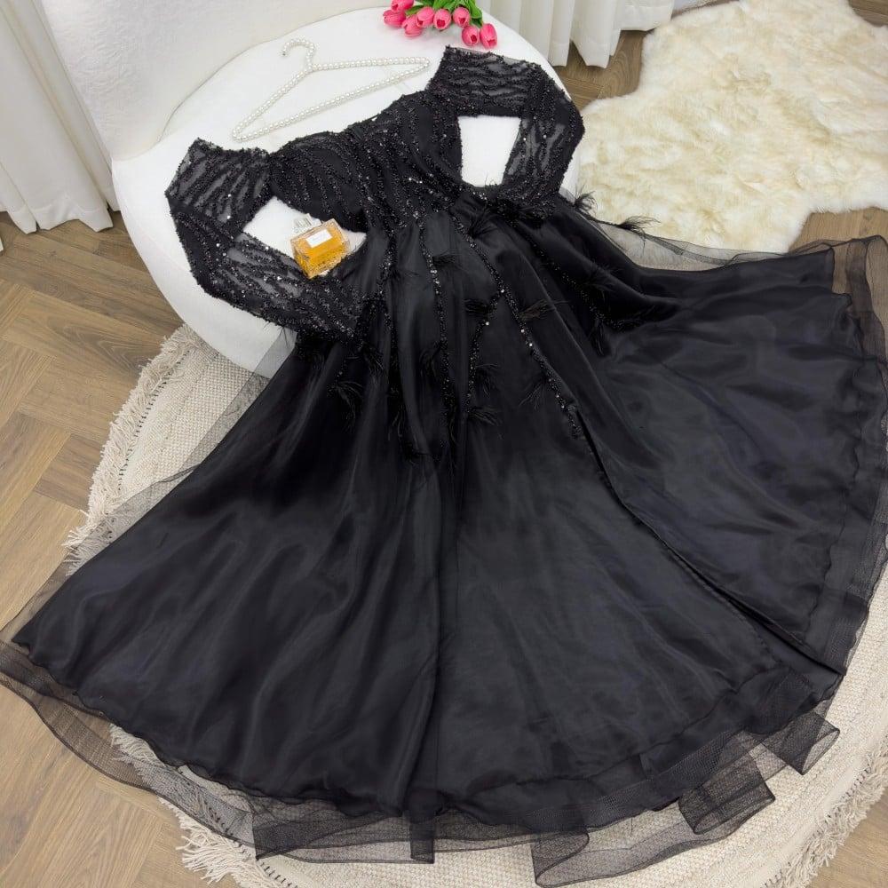 فستان اسود شك بأكمام فخم