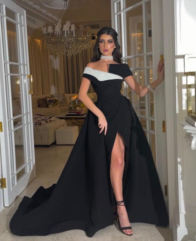 فستان ابيض واسود فخم