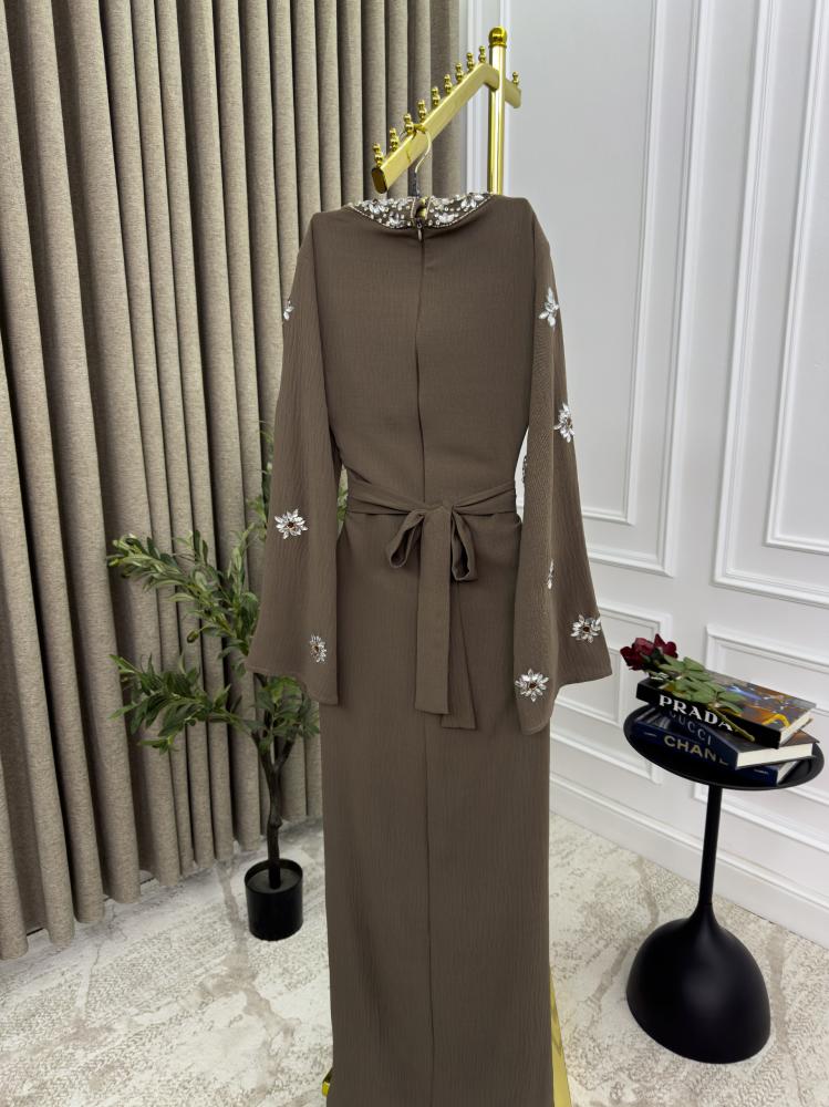 فستان سي واي اصلي درجه اولى بتطريز يدوي كريستال راقي