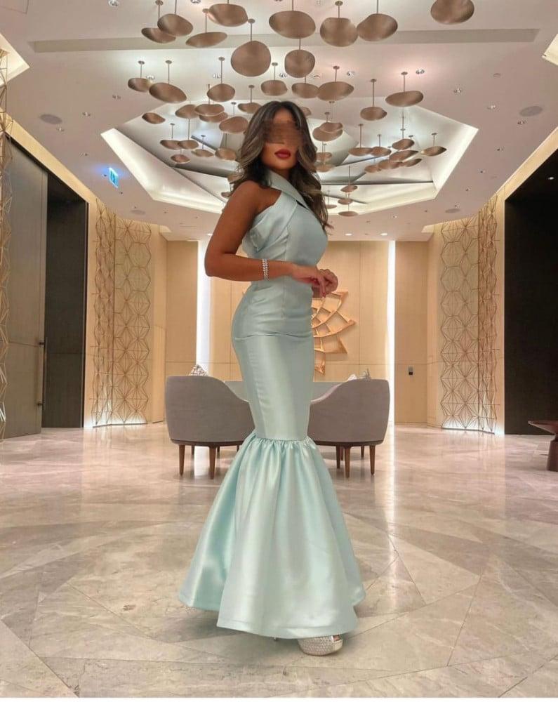 فستان مكشكش بالخامه الميكادو فرنسي انيق مع قصة الرقبه