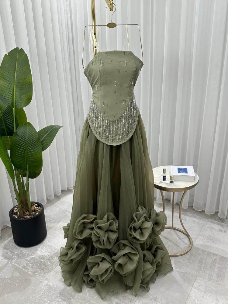 فستان سهرة خامة باربي واورجنزا تطريز احترافي
