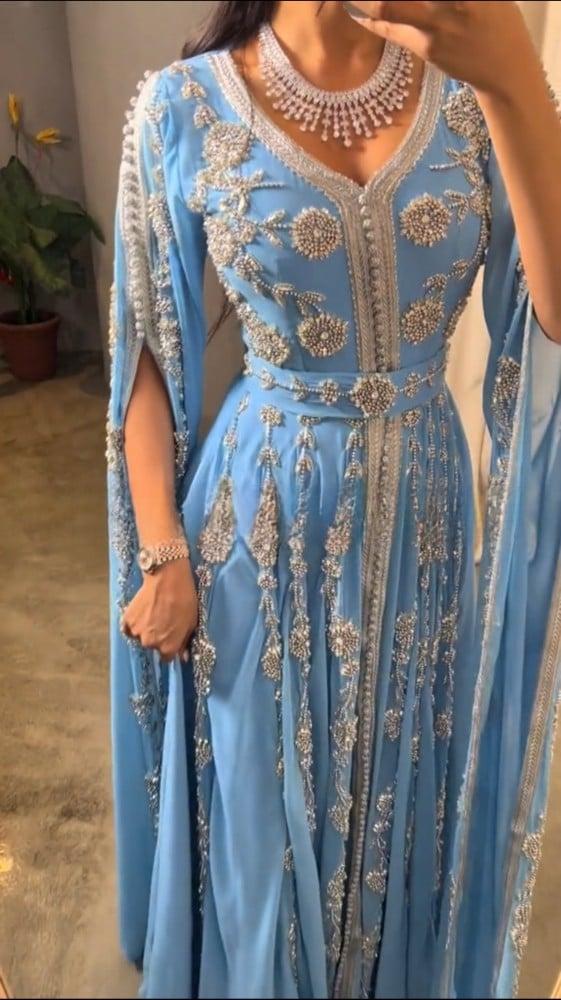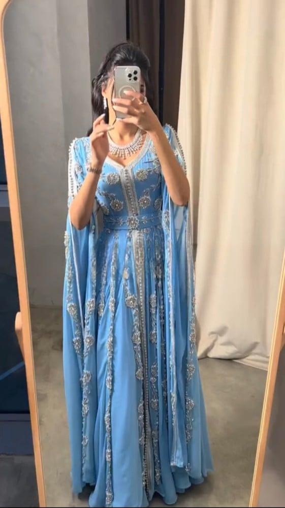 قفطان طويل فخم مطرز بالكامل