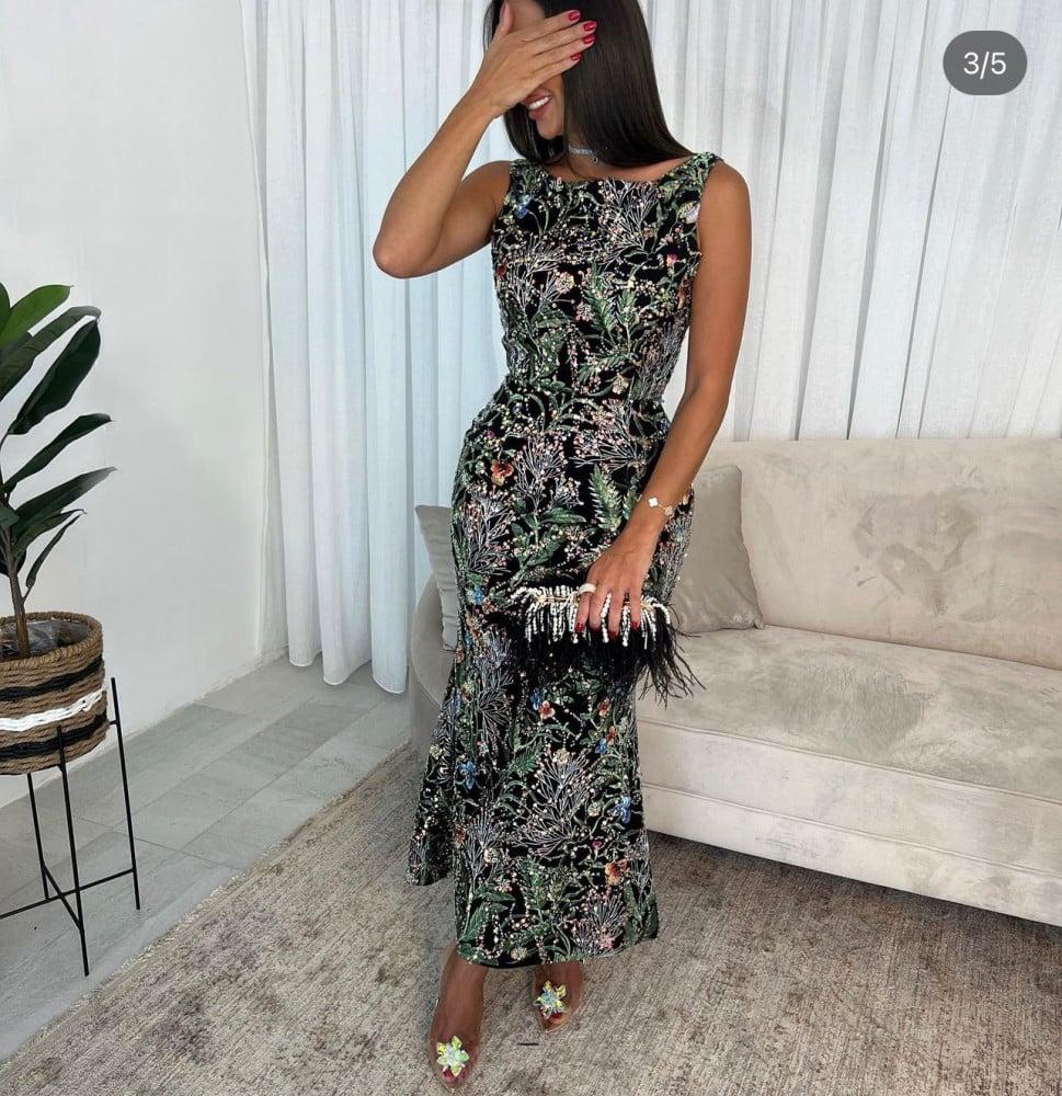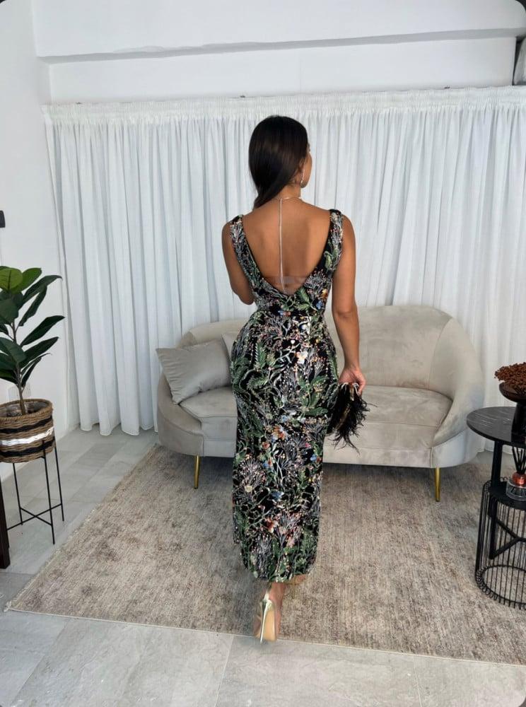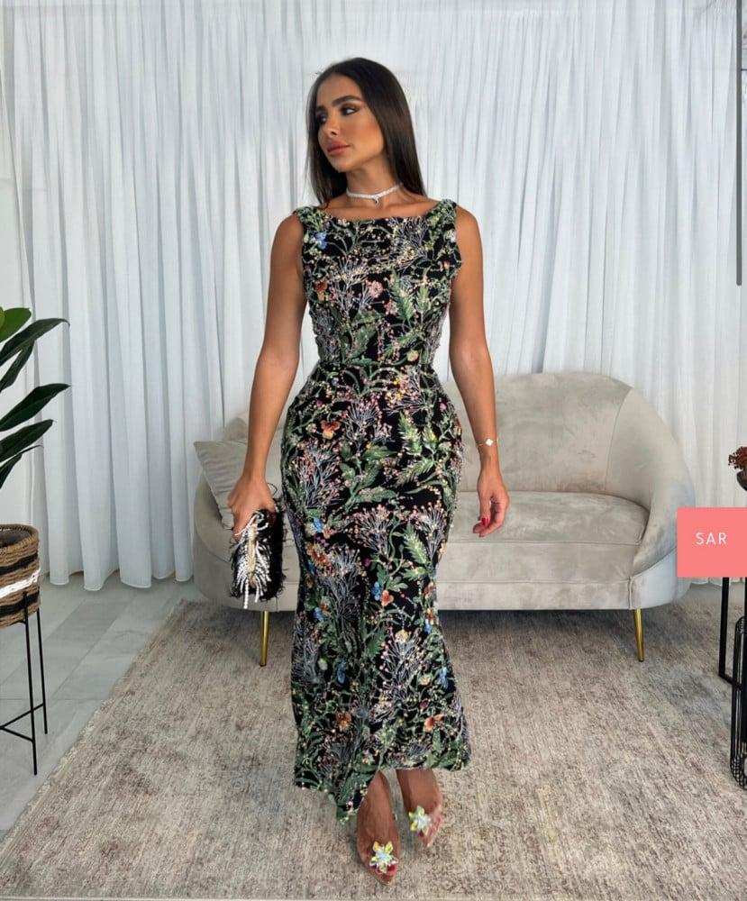 فستان فخم مطرز بأناقه ميد مفتوح الظهر