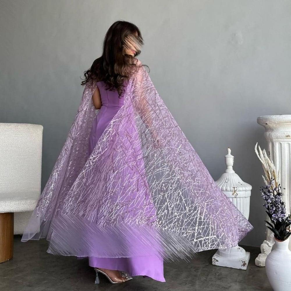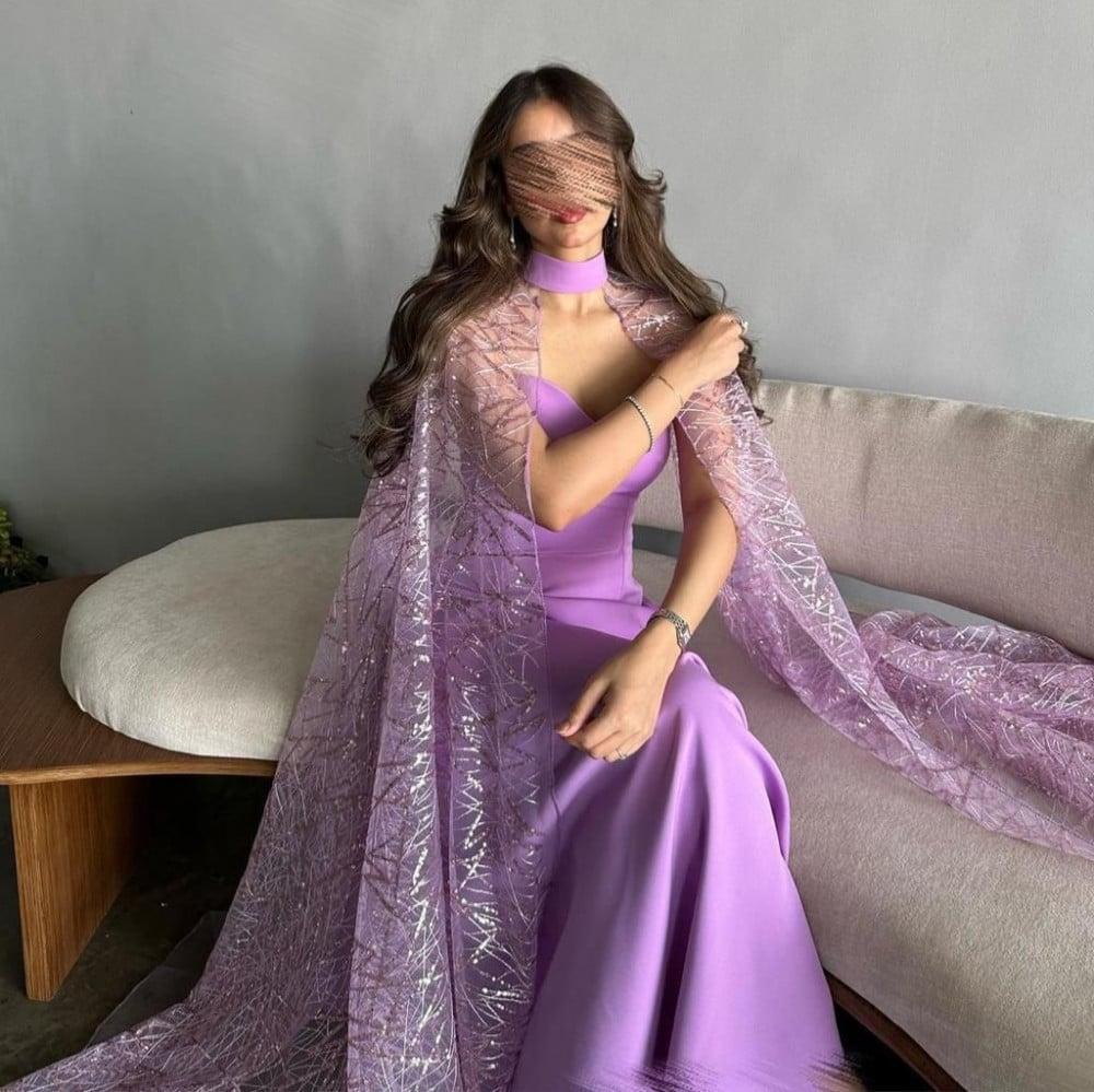 فستان تفته مطفي موف مع شبك تطريز رقبه